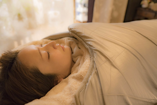 マットの温度75℃迄上げ発汗と共にヘッドマッサージ